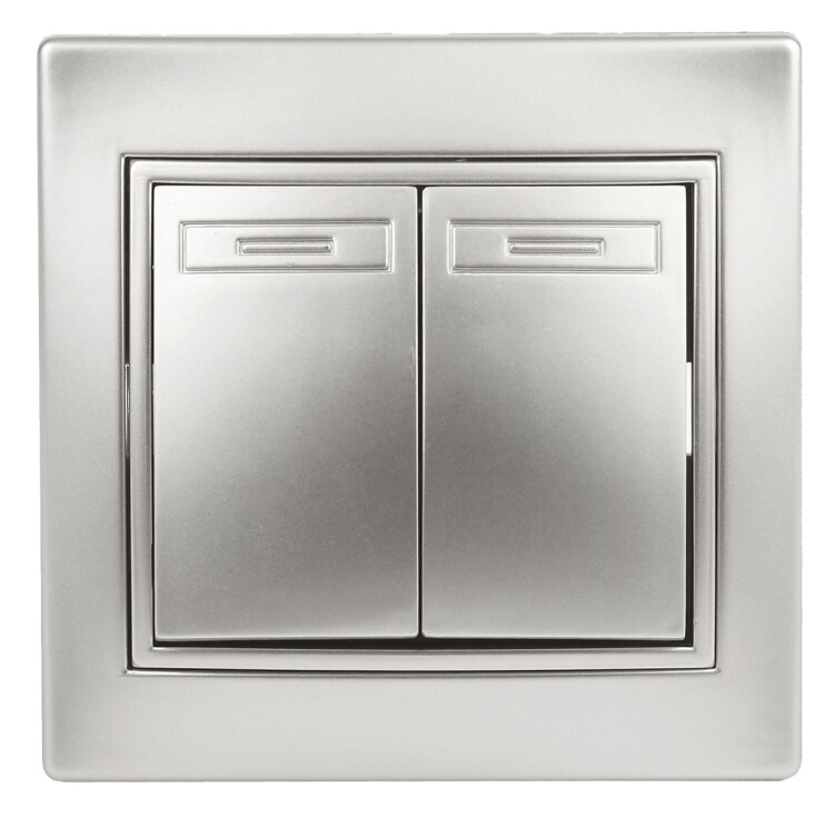 <p>Выключатель Intro Plano 1-104-03 двухклавишный, 10А-250В, IP20, СУ, Plano, алюминий</p>
