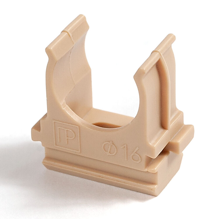 Предназначена для крепления гладких труб ПВХ или гофрированных труб одного диаметра к поверхности стен, потолков, полов или перегородок. Для монтажа предусмотрено технологическое отверстие под дюбель или саморез. Для удобства блочного монтажа состыковываются друг с другом с помощью специальных фиксаторов типа «ласточкин хвост».