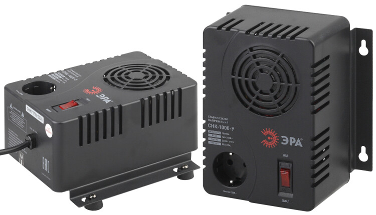Стабилизатор напряжения компактный однофазный релейный цвет чёрный модели СНК-1000-У. Номинальные характеристики (полная мощность / диапазон входного напряжения): 1000ВА 160-260В . Предназначен для поддержания стабильного однофазного напряжения питания бытовых приборов при отклонениях значений сетевого напряжения. Выбирая стабилизатор, нужно знать, какое электрооборудование будет к нему подключено: один прибор, группу приборов (наиболее чувствительных к перепадам напряжения в сети) либо вся домашняя (офисная) техника. Затем необходимо рассчитать суммарную мощность защищаемых электропотребителей. Основное условие выбора мощности стабилизатора напряжения - суммарная мощность подключаемой к нему нагрузки не должна превышать полной мощности самого стабилизатора (в противном случае автоматика стабилизатора будет их просто отключать). Точные значения мощности можно узнать из паспортных данных Вашего конкретного потребителя. Стабилизатор подбирается с запасом в 25-30% к его полной мощности.