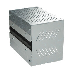 Коробка коммутационная предназначена для подключения внешних проводников отходящих линий при форме секционирования 4b на токи 100- 250 А. Коробка устанавливается на монтажную плату функционального блока с обратной стороны. Имеет перфорацию для эффективного отвода тепла. Высота коробки 150 мм.