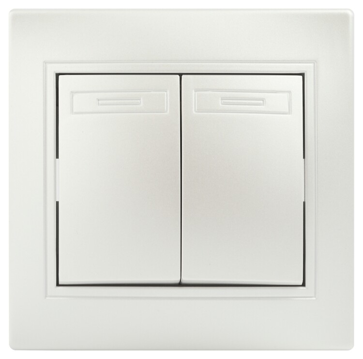 Выключатель Intro Plano 1-104-06 двухклавишный, 10А-250В, IP20, СУ, перламутр