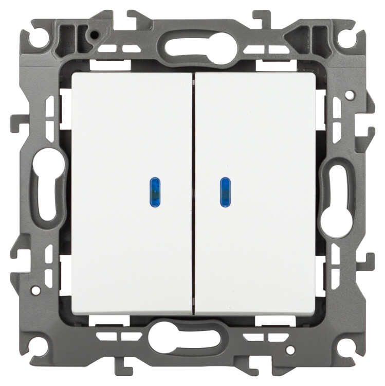 <p>Выключатель 2-клавишный с подсветкой серии Эра 12 скрыт.установки механизм цвет белый матовый 12-1105-01М. Номинальные характеристики 10А 250В . Сделан из поликарбоната, оснащёно автоматическими клеммами для быстрй и надёжной фиксации жил кабеля в механиме. Парные клеммы обеспечивают соединение шлейфом. Монтаж в подрозетник производится и на лапки, и на винты. Рамки приобретаются отдельно. Рамки Эра 12: 1 пост 12-5001-хх, 2 поста 12-5002-хх, 3 поста 12-5003-хх, 4 поста 12-5004-хх, 5 постов 12-5005-хх. Рамки Эра 12 Сатин: 1 пост 12-5101-хх, 2 поста 12-5102-хх, 3 поста 12-5103-хх, 4 поста 12-5104-хх, 5 постов - 12-5105-хх (хх - код цвета: 01-белый, 02-слоновая кость, 03-алюминий, 04-шампань, 05-антрацит, 06-чёрный, 07-ольха(белёный дуб-сатин), 08-вишня, 09-дуб, 10-венге, 11-сосна, 21-жёлтый, 22-оранжевый, 23-красный, 24-охра, 25-бордо, 26-лайм, 27-зелёный, 28-голубой, 29-синий).</p>