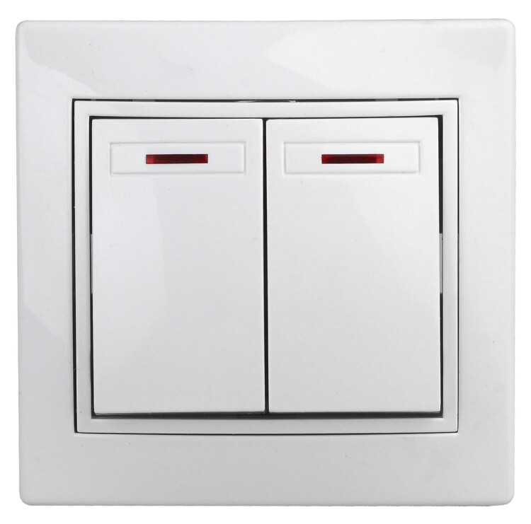 <table><tbody><tr><td>Выключатель Intro Plano 1-105-01 двухклавишный с подсветкой, 10А-250В, IP20, СУ, Plano, белый</td></tr></tbody></table>