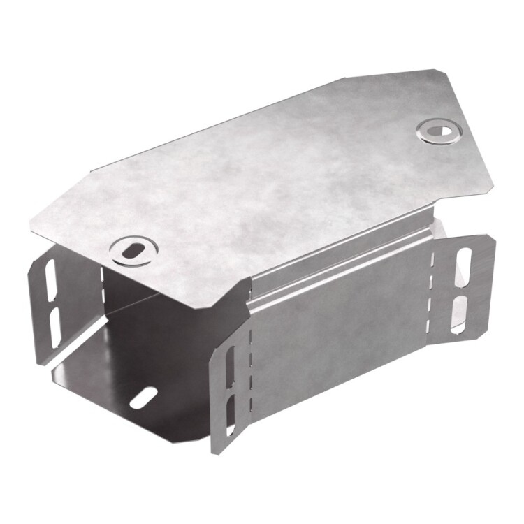 Аксессуары изготовленные из стали с защитным покрытием по методу Сендзимира – это изделия, на которых защитное цинковое покрытие было нанесено на листовую сталь перед изготовлением. Толщина защитного покрытия варьируется от 10 до 22мкм. Климатическое исполнение изделий УХЛ2, что предусматривают эксплуатацию в помещении и под навесом, при температуре эксплуатации от -80 до +150°С. Угол горизонталь ный 45 градусов предназначен для поворота кабельных трасс в горизонтальном направлении на 45 градусов, для перфорированных и глухих лотков. В комплект входит крышка.