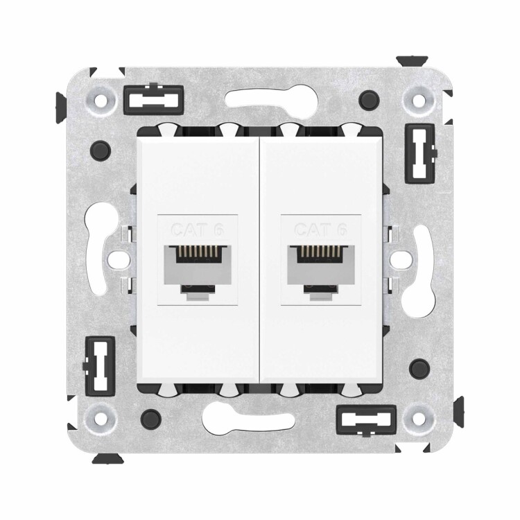 Компьютерная розетка двойная экранированная используется для подключения компьютерной техники и соединения с патч-панелью, предназначена для скрытого монтажа в стену, поставляется в комплекте с суппортом. Розетка RJ-45 категории 6 может использоваться для организации сетей с частотой до 250 МГц и передавать данные на большие расстояния. Материал розетки – металл, термопласт. Пластиковые детали изделия выполнены в цвете ""Ванильная дымка"".