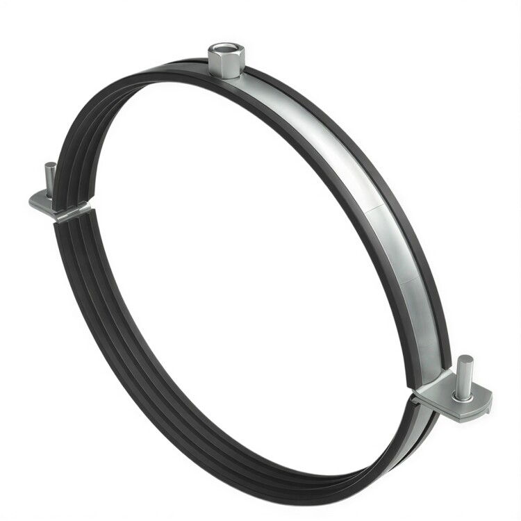 Хомут для воздуховодов с изоляцией и гайкой М8 BHV используется для монтажа воздуховодов круглого сечения. Легкая регулировка хомута по внешнему диаметру трубы за счет наличия двух винтов. Снижает уровень шума до 15 дБ в соответствии с DIN 4109. Применим для труб диаметром 200 мм.