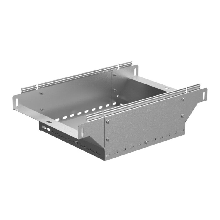 Аксессуары в исполнении HDZ – это изделия с защитным покрытием горячий цинк (по ГОСТ 9.307), подходят для соединения между собой лотков серии «Стандарт» в любой комбинации как внутри помещений, так и на открытом воздухе.Применяется для обеспечения полноразмерного ответвления горизонтальной кабеленесущей системы из лотков металлических в вертикальном направлении. В комплект не входит крышка.