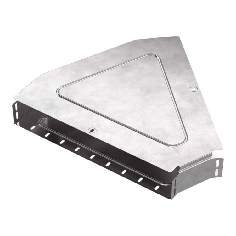 Аксессуары изготовленные из стали с защитным покрытием по методу Сендзимира – это изделия, на которых защитное цинковое покрытие было нанесено на листовую сталь перед изготовлением. Толщина защитного покрытия варьируется от 10 до 22мкм. Климатическое исполнение изделий УХЛ2, что предусматривают эксплуатацию в помещении и под навесом, при температуре эксплуатации от -80 до +150°С. Угол горизонталь ный 45 градусов предназначен для поворота кабельных трасс в горизонтальном направлении на 45 градусов, для перфорированных и глухих лотков. В комплект входит крышка.