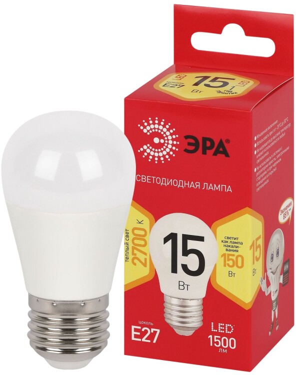 Бытовая светодиодная лампа ЭРА Серии Бюджет, создаёт яркое ровное освещение и экономит до 90% электроэнергии по сравнению с лампой накаливания с аналогичным световым потоком. Светит теплым светом с жёлтым оттенком - такая цветовая температура эффективна для отдыха и уютной атмосферы в доме. Используется в потолочных, настенных, настольных светильниках, в люстрах и бра. Мгновенно включается и не нагревается.