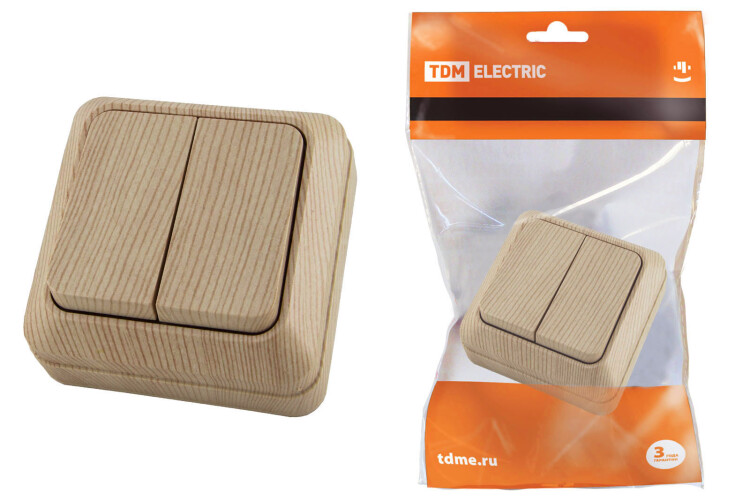 Выключатель двухклавишный открытой установки 10А сосна "Ладога" TDM предназначен для: