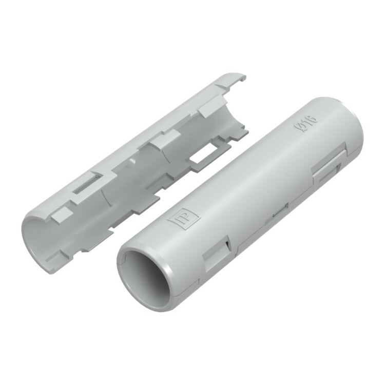 Муфта разборная позволяет соединять гофрированные и гладкие трубы различных типоразмеров без использования специальных инструментов, как при прокладке проложенной кабеленесущей трассе вновь, так и по ранее смонтированной системе труб, в том числе с переходом с гофрированной трубы на гладкую одного типоразмера.