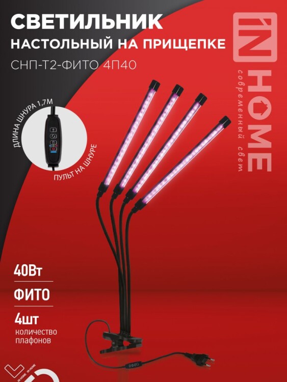Светильники СНП-Т2-ФИТО на прищепке с сине-красным спектром предназначены для ускорения роста и развития растений в условиях недостатка солнечного света.