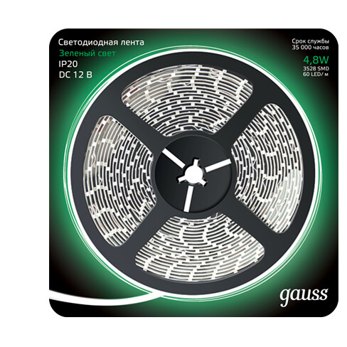 Лента LED 2835/60-SMD 4.8W 12V DC зеленый (блистер 5м), Цветная , 4,8Вт, 12В