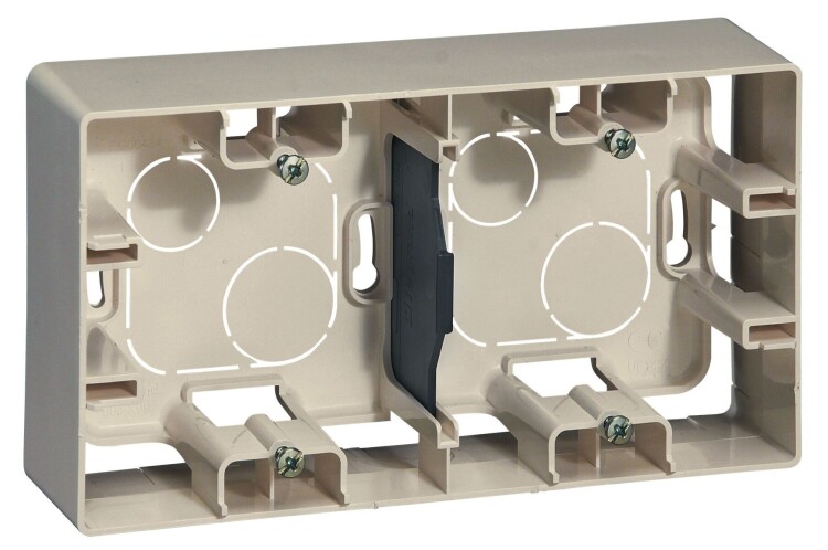 Коробка для наружного монтажа 2-м ETIKA предназначена для формирования посадочных мест под электроустановочные изделия при открытой проводке.