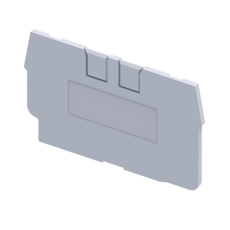 Концевая крышка для клемм пружинного типа OptiClip CX2.5. Концевая крышка применяется для изолирования открытых контактов клеммы. Крышка, как правило, устанавливается в конце ряда идентичных клемм и всегда при изменении физического размера клемм в ряду.