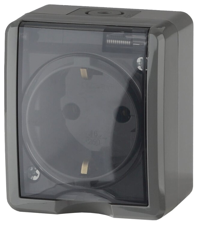 <p>Розетка IP54 со шторками серии Эра Эксперт открытой установки цвет серый 11-2402-03. Номинальные характеристики 16А 250В. Устройство выполнено из качественного поликарбоната, оснащёно уникальными винтовыми клеммами ЭКСПЕРТ для максимально качественного зажима кабеля в механизме.</p>