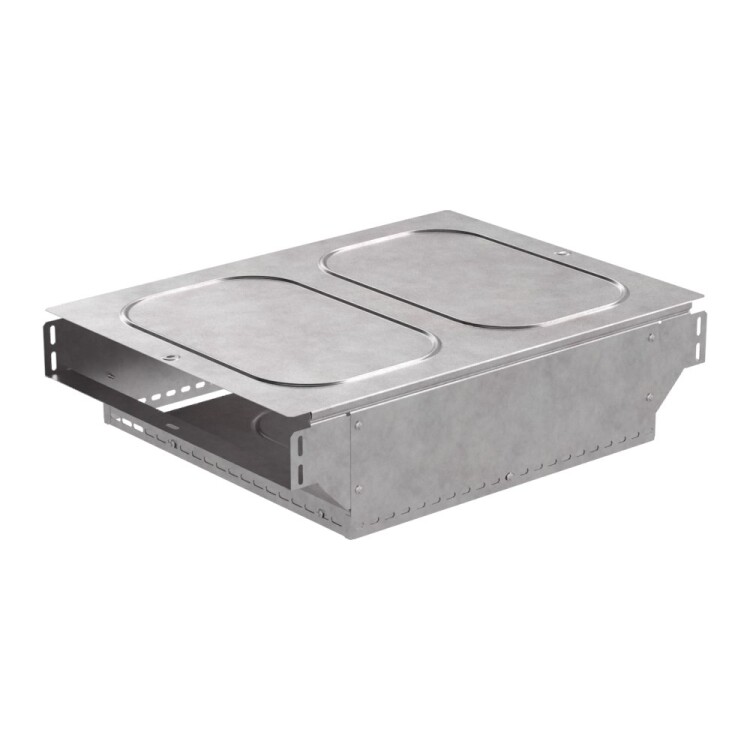 Аксессуары изготовленные из стали с защитным покрытием по методу Сендзимира – это изделия, на которых защитное цинковое покрытие было нанесено на листовую сталь перед изготовлением. Толщина защитного покрытия варьируется от 10 до 22мкм. Климатическое исполнение изделий УХЛ2, что предусматривают эксплуатацию в помещении и под навесом, при температуре эксплуатации от -80 до +150°С. Применяется для обеспечения полноразмерного ответвления горизонтальной кабеленесущей системы из лотков металлических в вертикальном направлении.