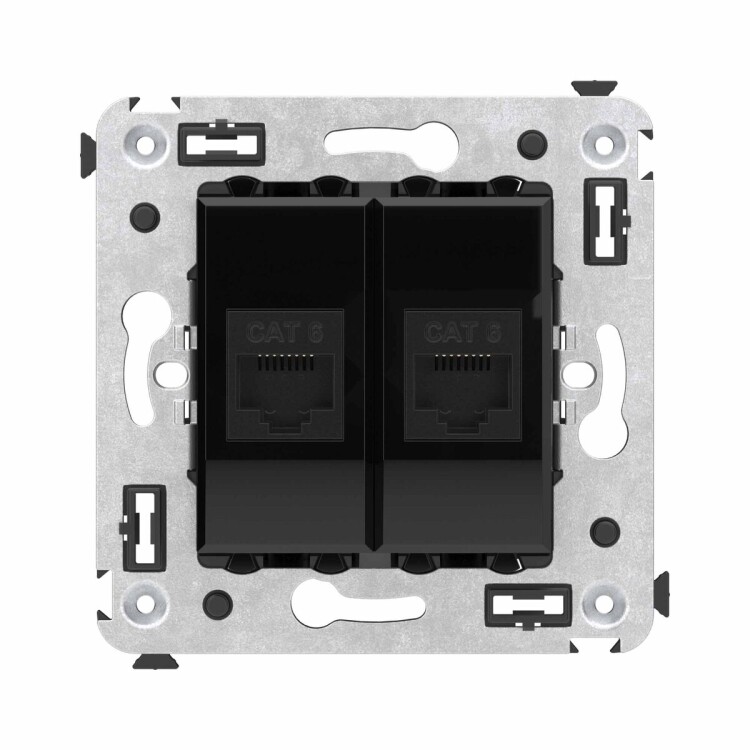 Компьют.розетка RJ-45 без шторки в стену, кат.6 двойная, "Avanti", "Черный квадрат"