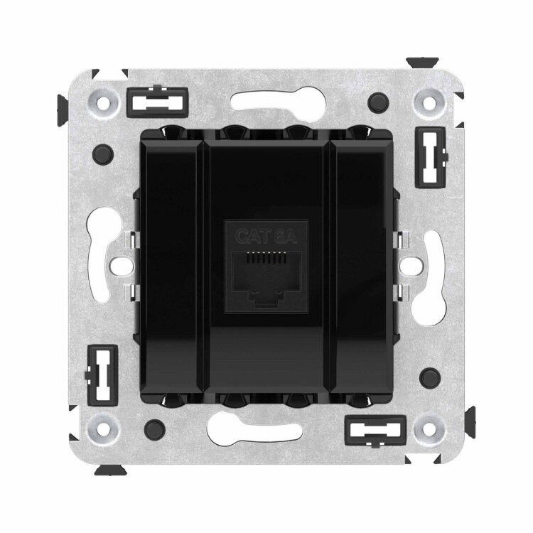 Компьютерная розетка двойная без шторки используется для подключения компьютерной техники и соединения с патч-панелью. Предназначена для скрытого монтажа в стену, поставляется в комплекте с суппортом. Розетка RJ-45 категории 6А может использоваться для организации сетей с частотой до 500 МГц и передавать данные до 10 Гбит/с. Материал розетки – металл, термопласт.Пластиковые детали изделия выполне ны в цвете ""Черный квадрат"".