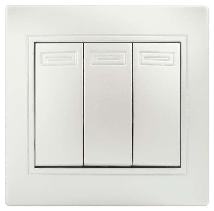 <p>Выключатель Трехклавишный серии Intro Plano скрытой установки цвет перламутр 1-106-06. Номинальные характеристики 10А 250В . Выключатель выполнен из качественного негорючего термопласта, укомплектован одноместной рамкой, оснащён винтовыми клеммами. Вертикальное расположение клемм обеспечивает удобный и надёжный монтаж. Клеммы с двумя отверстиями позволяют соединять соседние выключатели шлейфом. Установка в подрозетник производится как на монтажные лапки, так и на винты. Для установки 2-х и более выключателей в несколько подрозетников в ряд дополнительно используются многоместные рамки: 2-х постовая - 1-502-хх, 3-х постовая 1-503-хх, 4-х постовая - 1-504-хх (где хх - цветовой код: 01 - белый, 02 - слоновая кость, 03 - алюминий, 04 - шампань, 05 - антрацит, 10 - венге, 11 - сосна).</p>