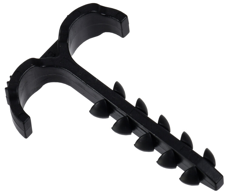 Дюбель-хомут Т-образный IEK изготовлен из полиамида 6.6 высокой прочности. Его особенная Т-образная форма сочетает в себе сразу два элемента: дюбель и скобу, что позволяет проложить 2 кабеля одновременно как вертикально, так и горизонтально. Одинаково эффективен при прокладке кабеля в кирпичных и блочных стенах, бетонных перекрытиях, потолках, полах и фундаментах. Это удобный, быстрый и экономически выгодный способ крепления кабеля при проведении электромонтажных работ.