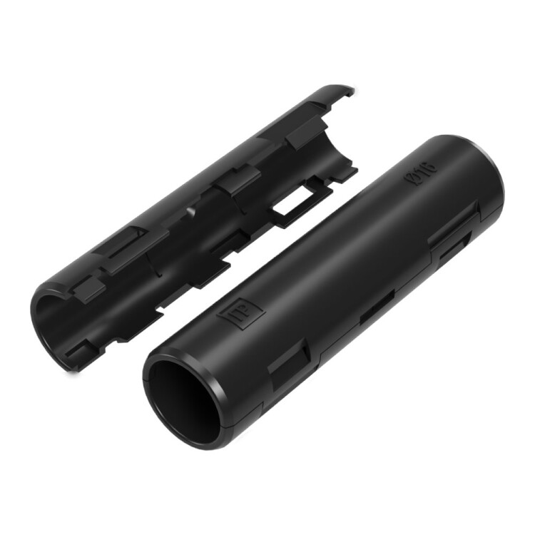 Муфта разборная позволяет соединять гофрированные и гладкие трубы различных типоразмеров без использования специальных инструментов, как при прокладке проложенной кабеленесущей трассе вновь, так и по ранее смонтированной системе труб, в том числе с переходом с гофрированной трубы на гладкую одного типоразмера.