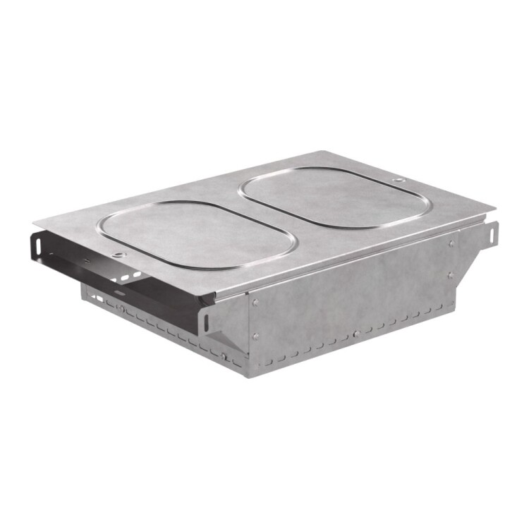 Аксессуары изготовленные из стали с защитным покрытием по методу Сендзимира – это изделия, на которых защитное цинковое покрытие было нанесено на листовую сталь перед изготовлением. Толщина защитного покрытия варьируется от 10 до 22мкм. Климатическое исполнение изделий УХЛ2, что предусматривают эксплуатацию в помещении и под навесом, при температуре эксплуатации от -80 до +150°С. Применяется для обеспечения полноразмерного ответвления горизонтальной кабеленесущей системы из лотков металлических в вертикальном направлении.
