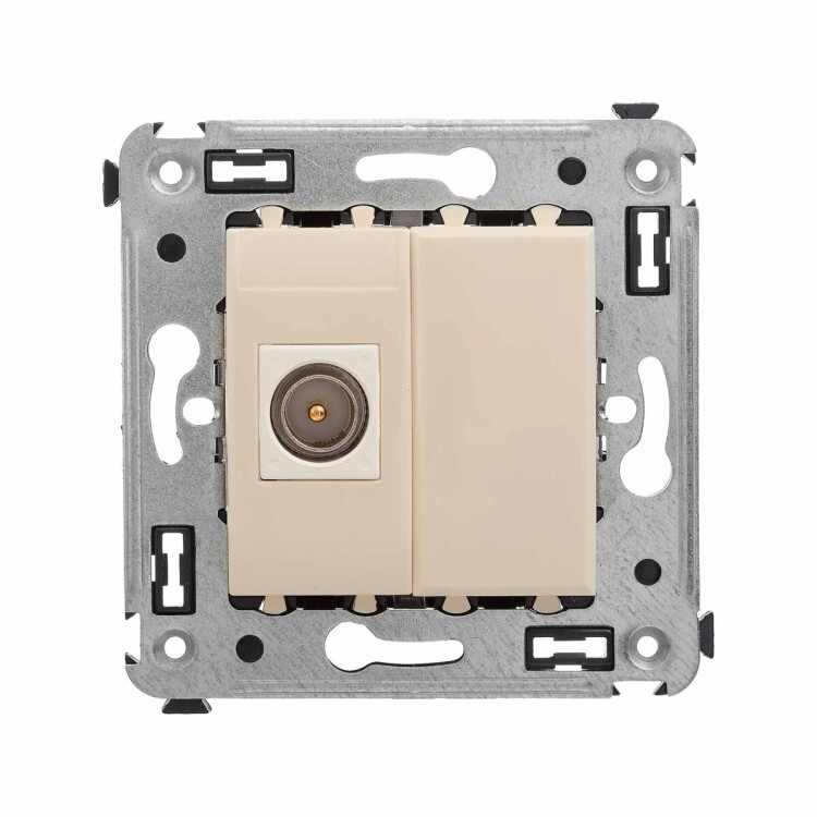 Оконечные телевизионные розетки предназначены для скрытой установки в стенах и применяются для подключения телевизионного кабеля. TV-розетки производства ДКС рассчитаны на частоту до 2400 Гц. Материал – металл, пластик. Пластиковые части имеют цвет "Ванильная дымка" – это нежный, теплый пастельный оттенок, идеально сочетающийся со светлыми оттенками и теплой цветовой гаммой, несущий ощущение уюта. Количество модулей в изделии – 2.