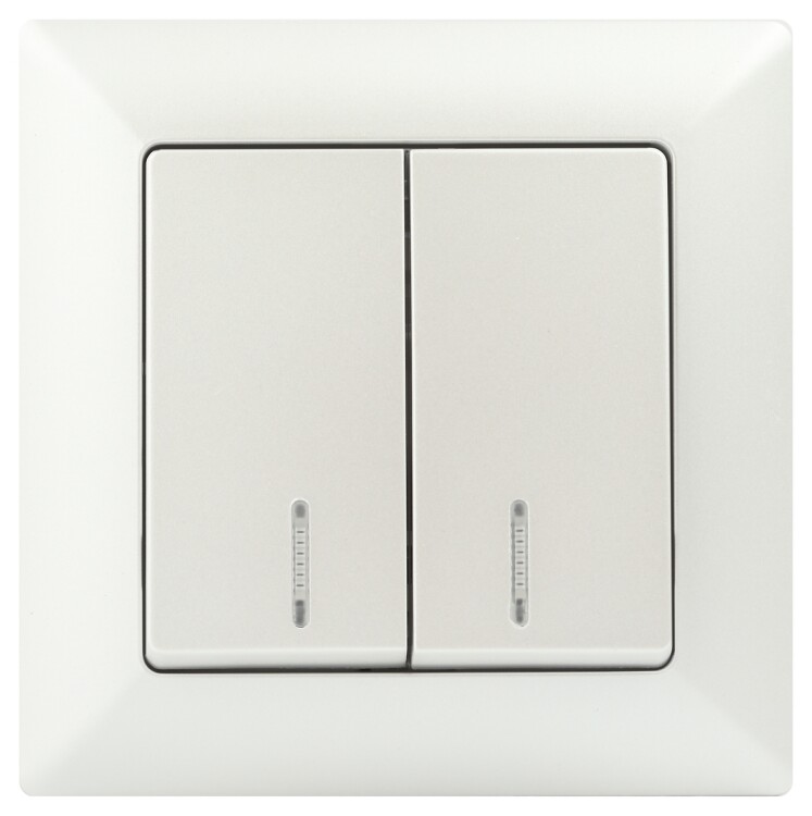 <p>Выключатель 2-клавишный с подсветкой серии Intro Solo скрытой установки цвет перламутр 4-105-06. Номинальные характеристики 10А 250В . Выключатель выполнен из качественного негорючего термопласта, укомплектован одноместной рамкой, оснащён винтовыми клеммами. Вертикальное расположение клемм обеспечивает удобный и надёжный монтаж. Клеммы с двумя отверстиями позволяют соединять соседние выключатели шлейфом. Установка в подрозетник производится как на монтажные лапки, так и на винты. Для установки 2-х и более выключателей в несколько подрозетников в ряд дополнительно используются многоместные рамки: 2-х постовая - 4-502-хх, 3-х постовая 4-503-хх, 4-х постовая - 4-504-хх (где хх - цветовой код: 01 - белый, 02 - слоновая кость, 03 - алюминий, 04 - шампань, 05 - антрацит, 10 - венге, 11 - сосна).</p>