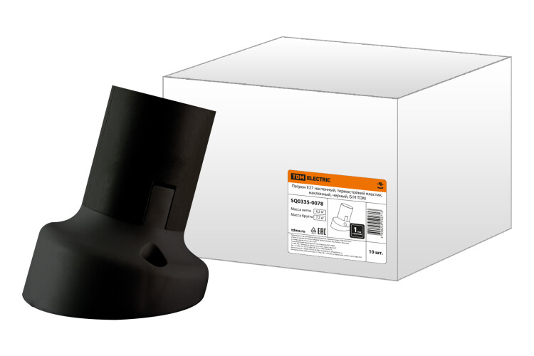 Патрон Е27 настенный, термостойкий пластик, наклонный, черный, Б/Н TDM