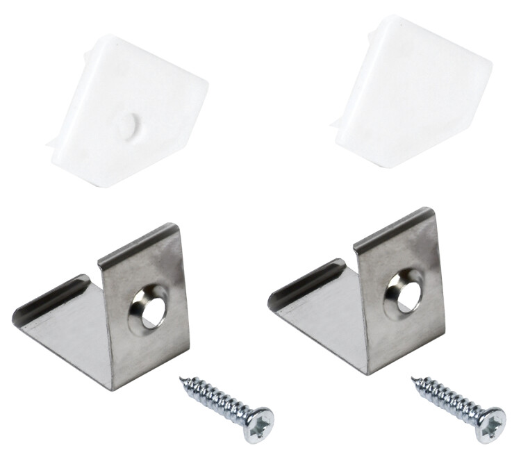 Набор для монтажа алюминиевого профиля - это дополнительный комплект торцевых заглушек, крепежных скоб и саморезов, предназначенный для систем освещения, в которых согласно проекту, профиль необходимо разрезать на несколько частей. В таких случаях монтажных аксессуаров, поставляемых в комплекте с профилем, будет недостаточно для крепления нескольких отрезков.