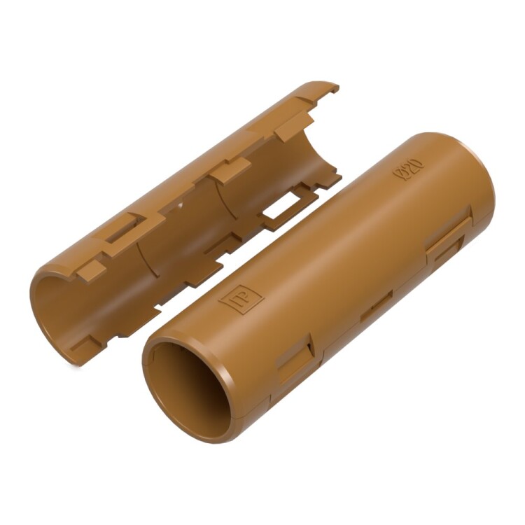 Муфта разборная позволяет соединять гофрированные и гладкие трубы различных типоразмеров без использования специальных инструментов, как при прокладке проложенной кабеленесущей трассе вновь, так и по ранее смонтированной системе труб, в том числе с переходом с гофрированной трубы на гладкую одного типоразмера.