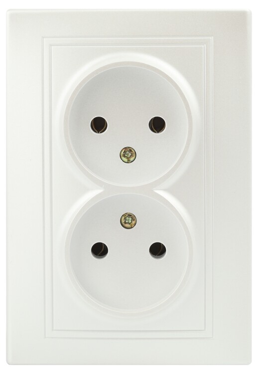 Розетка Intro Plano 1-204-06 без заземления двойная 2х2P, 16А-250В, IP20, СУ, перламутр