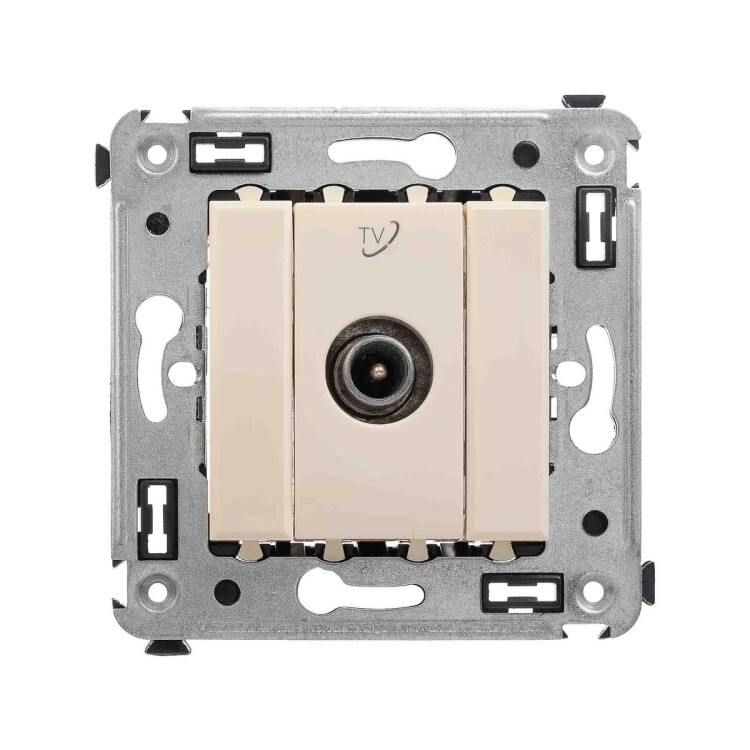 Проходные телевизионные розетки предназначены для скрытой установки в стенах, поставляются в комплекте с суппортом. Применяются для подключения телевизионного кабеля. TV-розетки производства ДКС рассчитаны на частоту до 2400 Гц. Материал – металл, пластик. 2 модуля. Пластиковые детали имеют цвет ""Ванильная дымка"". Производитель оставляет за собой право вносить во внешний вид изделия изменения, которые не влияют на его функционал, безопасность и надежность.