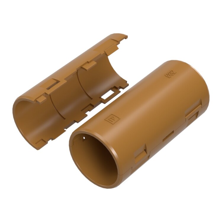 Муфта разборная позволяет соединять гофрированные и гладкие трубы различных типоразмеров без использования специальных инструментов, как при прокладке проложенной кабеленесущей трассе вновь, так и по ранее смонтированной системе труб, в том числе с переходом с гофрированной трубы на гладкую одного типоразмера.