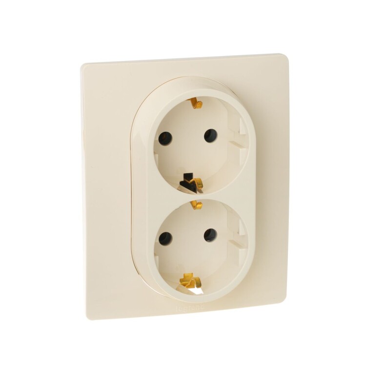 Двойная розетка с заземлением ETIKA для скрытого монтажа. Максимальный ток 16 А, максимальная мощность 3680 Вт. Применяется в зданиях, оборудованных для повышения безопасности проводкой с заземлением (с защитным проводником). Позволяет компактно разместить две розетки, используя одно место установки.