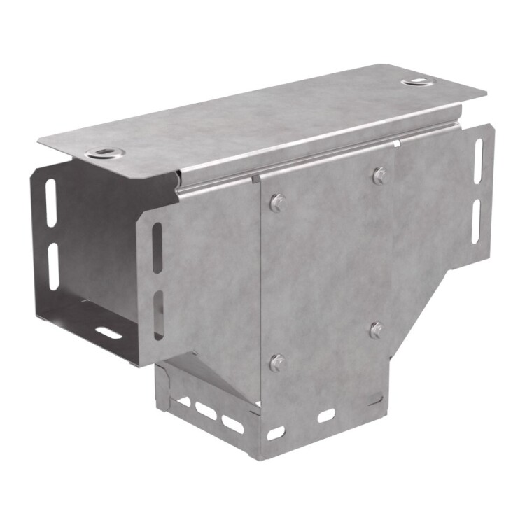 Аксессуары изготовленные из стали с защитным покрытием по методу Сендзимира – это изделия, на которых защитное цинковое покрытие было нанесено на листовую сталь перед изготовлением. Толщина защитного покрытия варьируется от 10 до 22мкм. Климатическое исполнение изделий УХЛ2, что предусматривают эксплуатацию в помещении и под навесом, при температуре эксплуатации от -80 до +150°С. Применяется для обеспечения полноразмерного ответвления горизонтальной кабеленесущей системы из лотков металлических в вертикальном направлении.