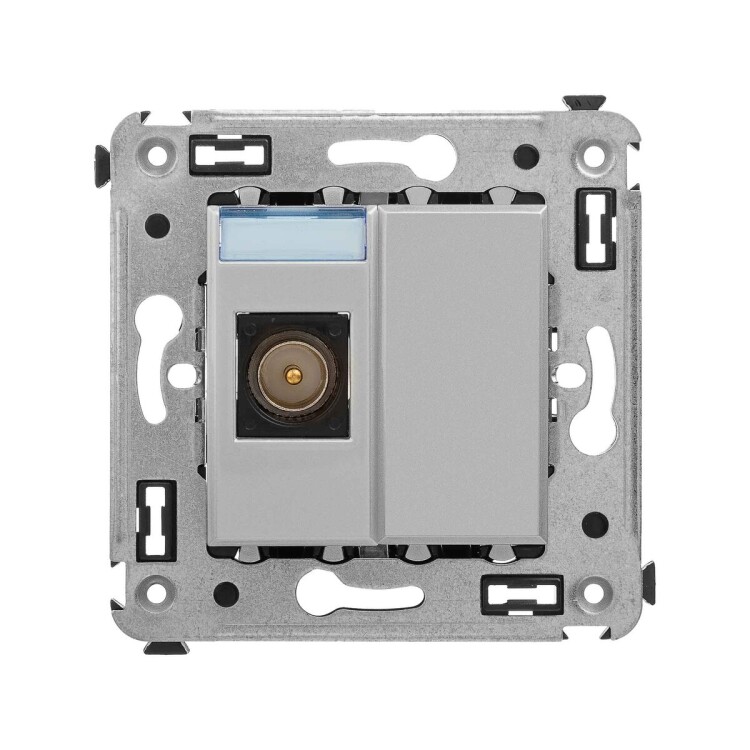 Розетка TV оконечная в стену. Назначение- для монтажа в подрозеточные коробки глубиной не менее 45 мм (код 59301),подключение телевизионного кабеля к телевизору. Характеристики- диапазон рабочих частот 4–2400 МГц,затухание