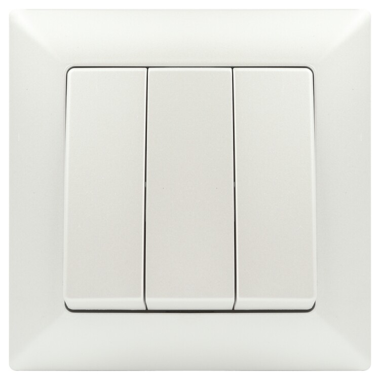 <p>Выключатель трехклавишный серии Intro Solo скрытой установки цвет перламутр 4-106-06. Номинальные характеристики 10А 250В . Выключатель выполнен из качественного негорючего термопласта, укомплектован одноместной рамкой, оснащён винтовыми клеммами. Вертикальное расположение клемм обеспечивает удобный и надёжный монтаж. Клеммы с двумя отверстиями позволяют соединять соседние выключатели шлейфом. Установка в подрозетник производится как на монтажные лапки, так и на винты. Для установки 2-х и более выключателей в несколько подрозетников в ряд дополнительно используются многоместные рамки: 2-х постовая - 4-502-хх, 3-х постовая 4-503-хх, 4-х постовая - 4-504-хх (где хх - цветовой код: 01 - белый, 02 - слоновая кость, 03 - алюминий, 04 - шампань, 05 - антрацит, 10 - венге, 11 - сосна).</p>