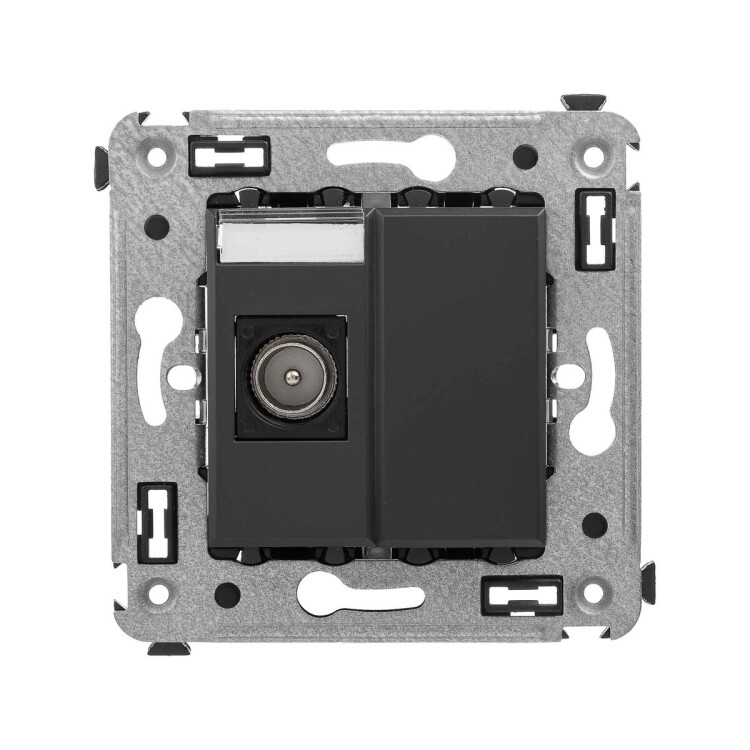 Оконечные телевизионные розетки предназначены для скрытой установки в стенах и применяются для подключения телевизионного кабеля. TV-розетки производства ДКС рассчитаны на частоту до 2400 Гц. Материал – металл, пластик. Пластиковые части устройства имеют цвет ‘Черный матовый‘ – таинственный, темный и глубокий оттенок, который легко сочетается с любыми цветами и фактурами.