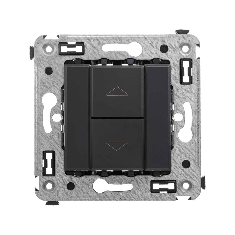 Механизм управления рольставнями. Назначение- предназначен для управления приводом рольставней и штор. Характеристики- номинальное напряжение – 230 В, диаметр отверстий для ввода кабелей – 3 мм, винтовые зажимы, шаблон для зачистки кабеля – 11 мм. Механизм устанавливается в подрозеточные коробки глубиной не менее 45 мм (код 59301) при помощи каркаса с лапками (код 4400802) и саморезов. Цвет- "Черный матовый".