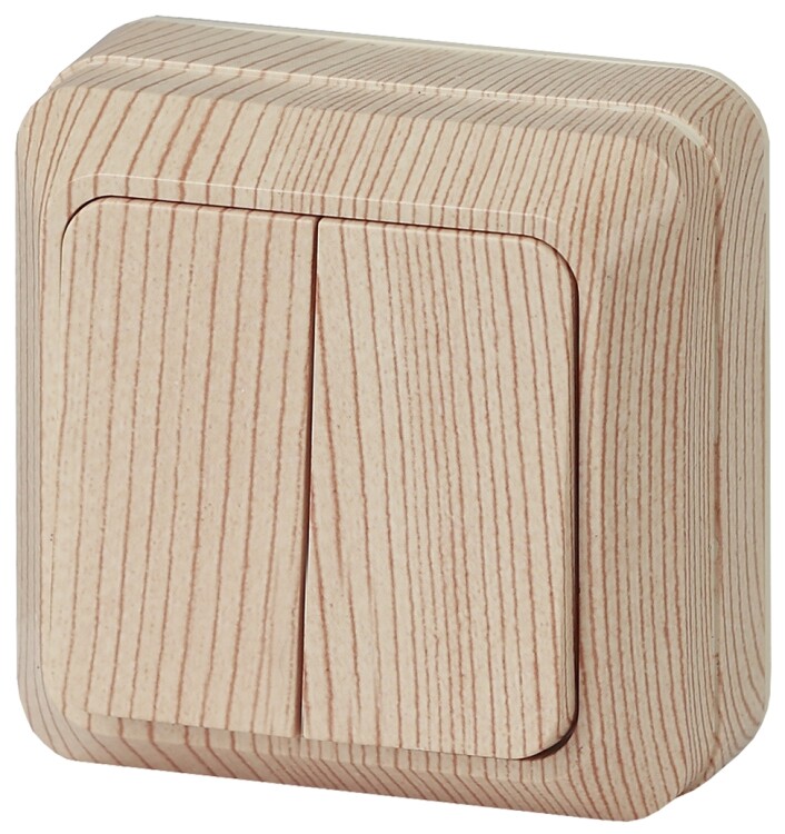 <table><tbody><tr><td>Выключатель Intro Quadro 2-104-11 двухклавишный 10А-250В, IP20, ОУ, сосна</td></tr></tbody></table>