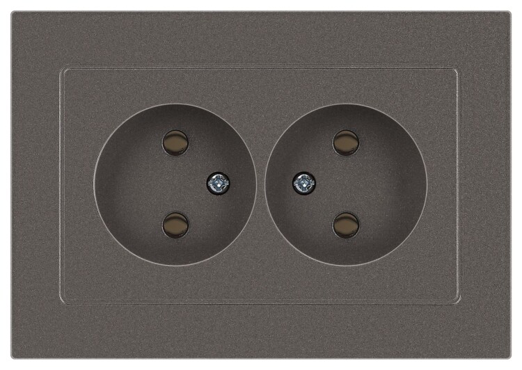 <p>Розетка двойная без заземления серии Intro Accent скрытой установки цвет титан 6-204-09. Номинальные характеристики 16А 250В. Выполнена из негорючего термопласта, оснащена винтовыми клеммами. Парные клеммы обеспечивают соединение шлейфом. Монтаж в подрозетник производится и на лапки, и на винты.</p>