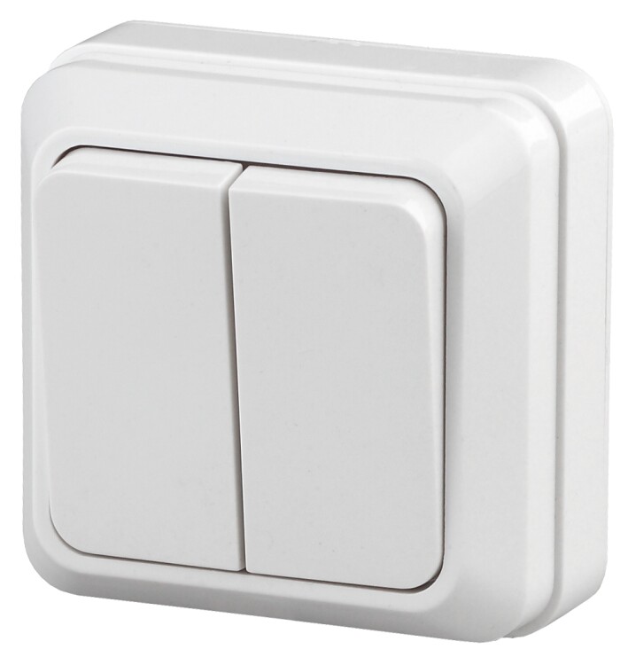 <p>Выключатель Intro Quadro 2-104-01 двухклавишный 10А-250В, IP20, ОУ, белый</p>