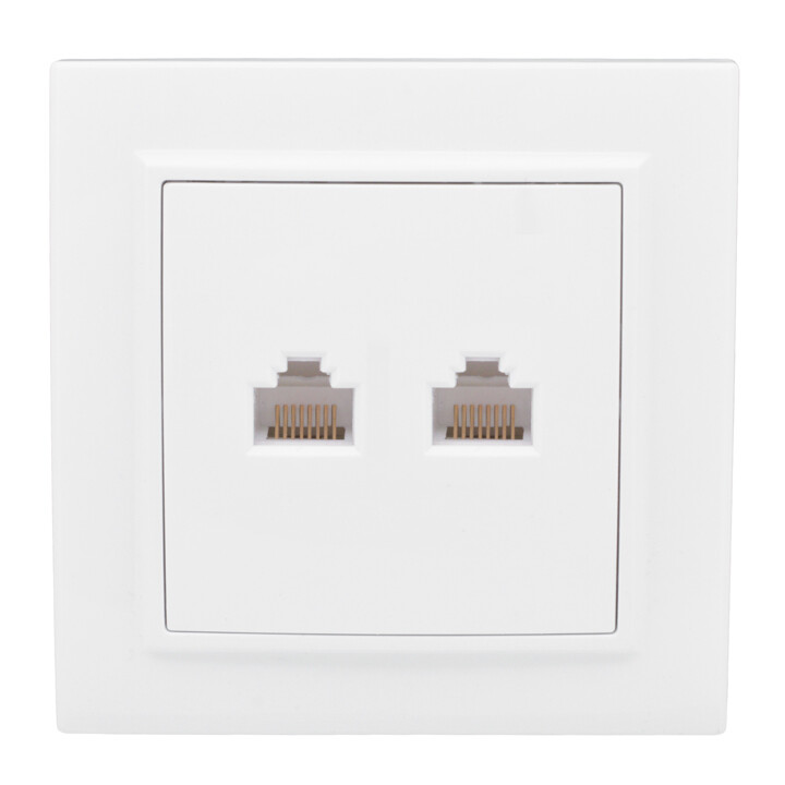 Розетка двойная компьютерная RJ45+RJ45 EKF серии Минск станет отличным решением для квартиры и загородного дома при подключении устройств к сети Интернет. Компактный механизм упрощает монтаж изделия. Зафиксированные распорные лапки надежно фиксируют устройство в монтажной коробке.