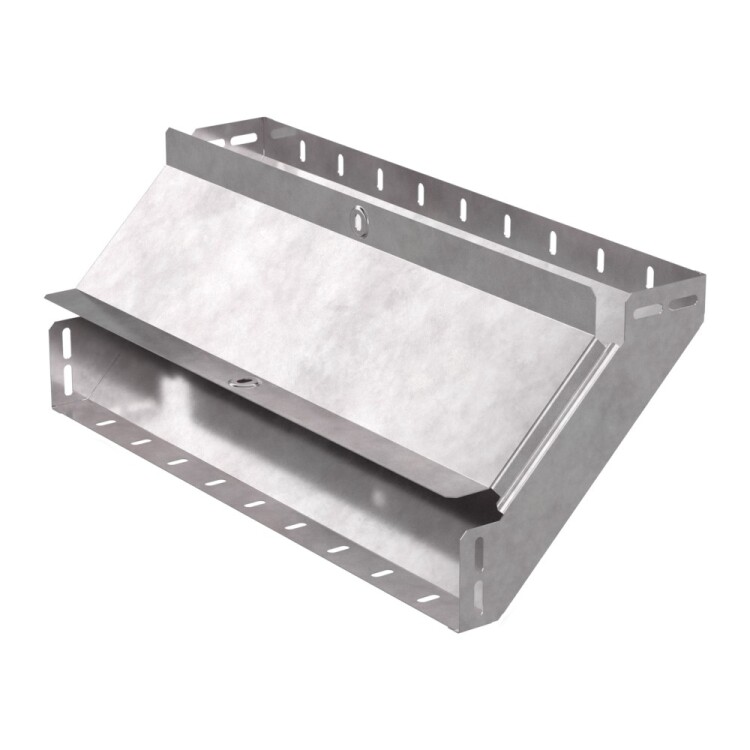 Аксессуары изготовленные из стали с защитным покрытием по методу Сендзимира – это изделия, на которых защитное цинковое покрытие было нанесено на листовую сталь перед изготовлением. Толщина защитного покрытия варьируется от 10 до 22мкм. Климатическое исполнение изделий УХЛ2, что предусматривают эксплуатацию в помещении и под навесом, при температуре эксплуатации от -80 до +150°С. Угол вертикальный внутренний 90 градусов предназначен для подъема кабельных трасс на 90 градусов, для перфорированных и глухих лотков. В комплект входит крышка.