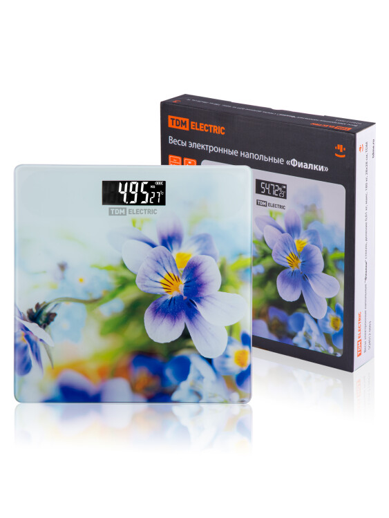 Весы электронные напольные "Фиалки", стекло, деление 0,01 кг, макс. 180 кг, 28х28 см, TDM