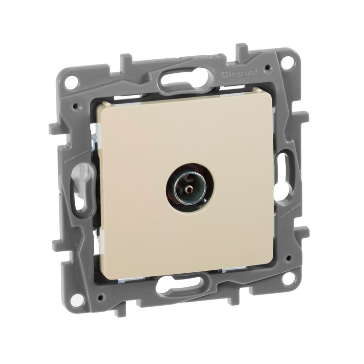 TV-розетка тип "звезда" ETIKA.Используется для подключения одного ТВ приемника к антенне, а также для организации телевизионной сети по схеме "звезда", когда к каждому телевизору прокладывается своя линия от источника сигнала.