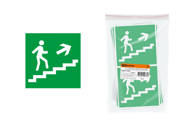 Знак "Направление к эвакуационному выходу" (по лестнице направо вверх), предназначен для зрительного восприятия информации в целях обеспечения безопасности.