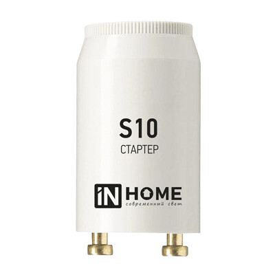 Стартер S10 производства компании ТМ IN HOME – это низковольтный аппарат, применяемый совместно с дросселем (балластом). Служит для включения ламп мощностью 4 - 65 Вт люминесцентного типа, подключаемых последовательно к сети переменного тока 230В и частотой 50Гц. Модель тлеющего разряда S10 применяется со светильниками общего, либо специального назначения – посадочный размер всех стартеров является унифицированным и подходит к любым типам люминесцентных светильников. Замену стартера рекомендуем производить одновременно с заменой лампы.